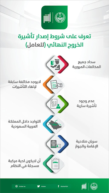 شروط إصدار تأشيرة الخروج النهائي من أبشر في العارضة