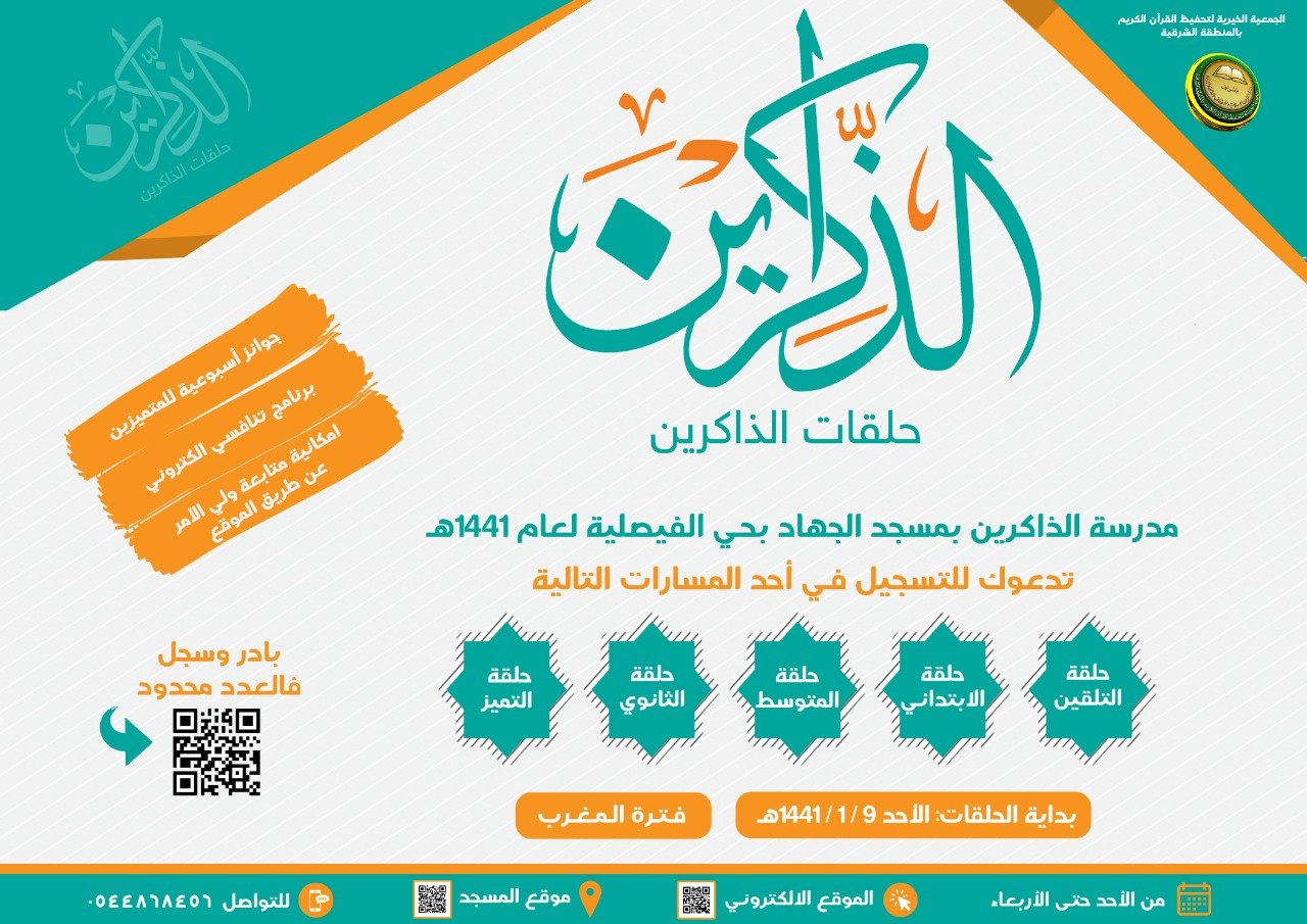 تحفيظ الشرقية On Twitter إعلان تعلن الجمعية الخيرية لتحفيظ القرآن عن بدء التسجيل في حلقات الذاكرين في مدينة الدمام حي الفيصلية بمسجد الجهاد للعام ١٤٤١هـ والذي يشمل المراحل العمرية التالية