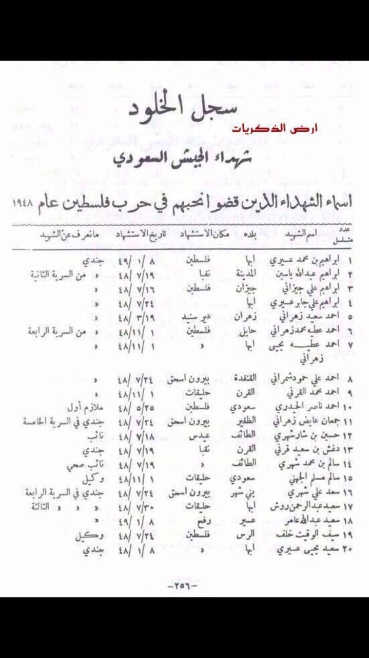 وليد الفراج Twitter Da اسماء شهداء الجيش السعودي في حرب فلسطين 1948 اهل الجنوب في المقدمة الله يرحم شهداء بلادنا في كل مكان Http T Co Gt0qkwculp